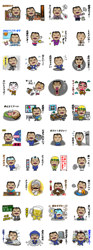 おじさんビジネスマン・サラリーマンが使うスタンプ 会社生活で使える 家庭で使える おっさんのランチやコーヒーブレイクや飲み会や出張や会議中や在宅勤務にも使える
