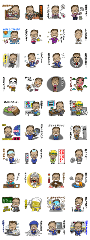 還暦ビジネスマン・サラリーマンが使うスタンプ 会社生活で使える 家庭で使える おっさんのランチやコーヒーブレイクや飲み会や出張や会議中や在宅勤務にも使える