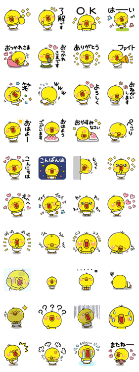 明るくにぎやかなひよこのスタンプです。ポジティブなスタンプが多めです。スタンプを飾って癒されましょう!!
