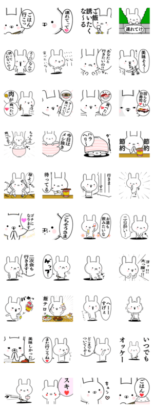 食事好きウサギです。友達や恋人,会社の同僚達も誘えます。焼肉、ラーメン,お寿司,飲み会,宴会,二次会にも使えて便利!ビール,ワイン,日本酒,カクテルなどのお酒の席にも。ノンノノン より発売