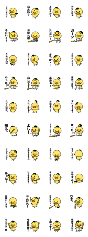 九州の福岡に住むひよこ。野球が好き。 いつも野球の応援に行く。プロ野球選手になりたい。 日常会話と応援に。keep calm より発売