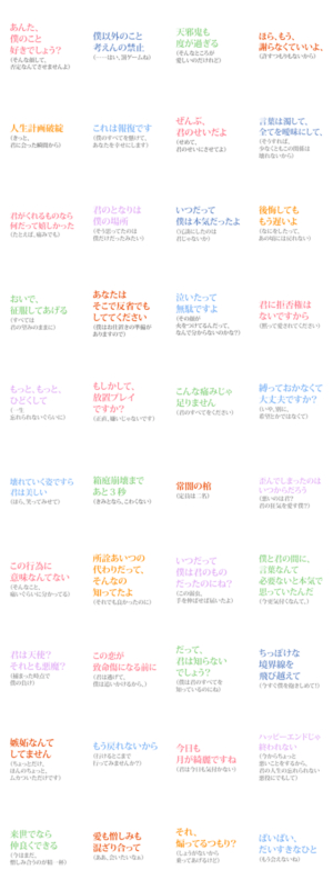 会話を古の同人サイトの短編小説のように終わらせることができるスタンプです。女性向けサイトを運営されていた方やあの頃の同人小説が好きだった方、腐女子の方に。mumu より発売