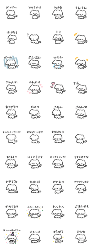 妹作。ゆるくてかわいいいぬのすたんぷ。使いやすい/犬/シュール/雑/ゆるい/らくがき/ぴえん/あざと可愛い/やさしい/家族/癒される/日常会話/挨拶minonyan より発売