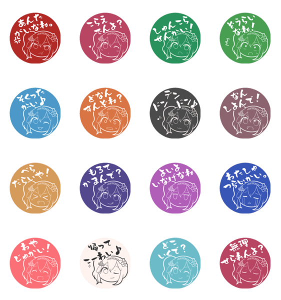 (全16種類)愛媛県新居浜市ご当地キャラクター「新居めぐり」の新居浜弁スタンプです。新居 めぐり より発売