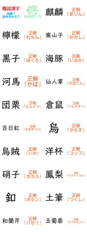 【読める?】難読漢字クイズ①★°のダウンロードはこちら↓