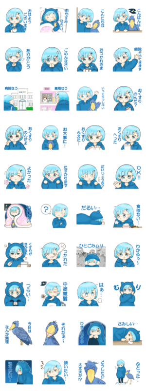 うつ病や精神疾患を持った女性のためのスタンプ ハシビロコウさんも出ています。Tyamiko Inoue より発売