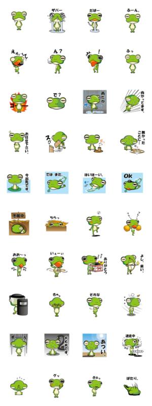 ちょっとシュールなカエルスタンプです。hasimiki より発売