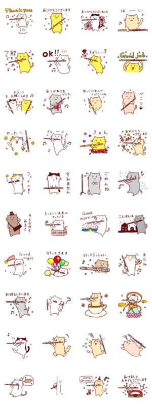 猫とフルートのスタンプ♪日常ことば40種♪のダウンロードはこちら↓