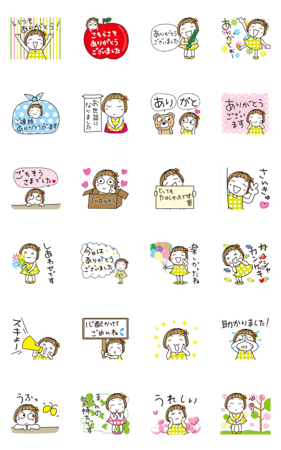 ▶︎動く!はな子。《ありがとういっぱい》 スタンプ画像一覧