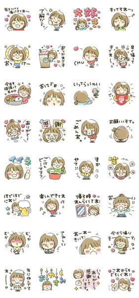 スタンプで夫婦仲良くラブラブに。カップル/嫁/主婦/奥さん/妻/彼女/夫/旦那/バレンタイン/好き/ハート
