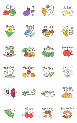 栄養不足なアナタへ…。ゆるカワな動く野菜たちのやさしい言葉です♪DECOR より発売