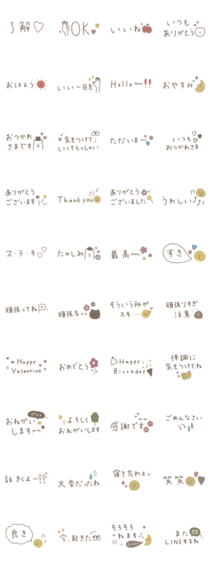 大人女子でも使いやすいお洒落な,くすみカラーでまとめたシンプルなスタンプです。優しい気持ちに…♡シンプルだけどお洒落。省スペースで大人。Let's tell your feelings!mame mametaro より発売