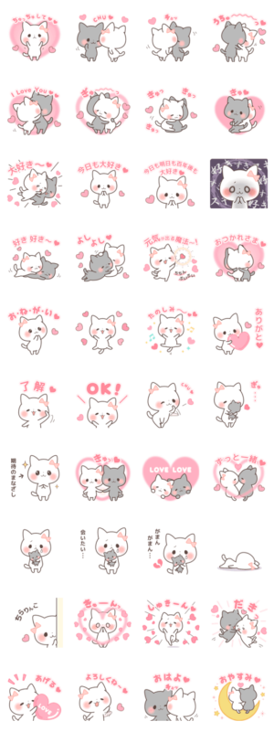 ラブラブ猫のスタンプ。カップルや夫婦、大好きな人と一緒に使える愛がいっぱいつまったスタンプです♡