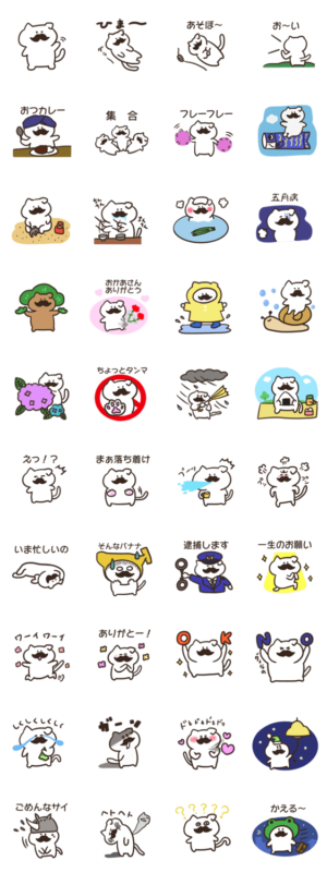 立派な髭の生えた猫であ〜る。 日常会話はもちろん、5月・6月のイベントもスタンプになりました。 こいのぼりや菖蒲湯、梅雨・・・色々あるよ!