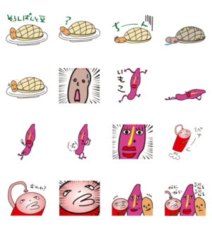 ひとつめは、めろんぱんとまめです。 その次は、いもです。 その次に、缶です。 最後は、お花です。 あだ名が豆だったり。いもだたっり。する人このスタンプどうですかー。あきさち より発売