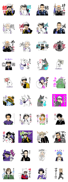 「週刊少年サンデー」で超人気を博した妖結界バトルストーリー、『結界師』がついにスタンプになって登場!!なんと田辺イエロウ先生が全種類描き下ろしたファン必携の逸品!!