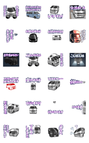 ワゴン、商用車、そしてキャンピングカーの動くスタンプです。特にキャンパーは少ないので、もっと作ってみたいと思います。ワゴン2と台詞が被らないので併せて使えます。