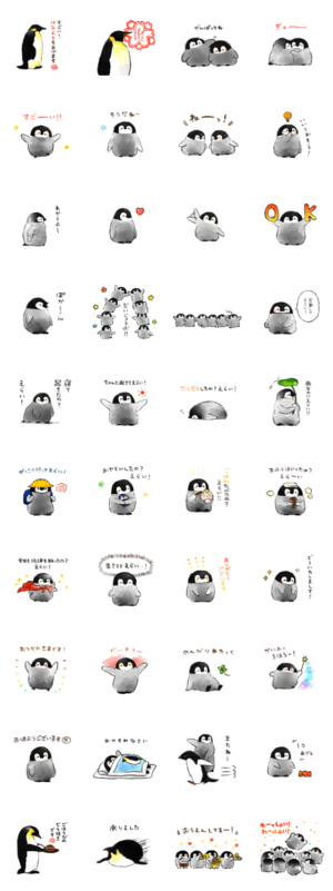 生きとし生ける人々を、肯定したり褒めたり労わったりちやほやしてくれるコウテイペンギンちゃんたちのスタンプです。