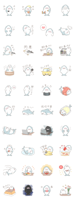 ふんわりしたサメのスタンプです。友達はうみねこさん。 気に入ってもらえたら嬉しいです。襟えり より発売