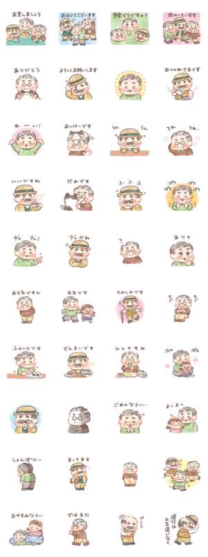 のんびり過ごす仲良しなおじさんたちがスタンプになりました。株式会社マインドウェイブ より発売
