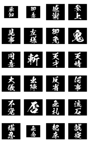 鬼かっこいエフェクトのポップアップスタンプ!シンプル/漢字/毎日使える/筆文字/書道/挨拶/敬語丁寧/鬼毛筆/家族連絡/バカ幻滅スタンプこざるパパ より発売