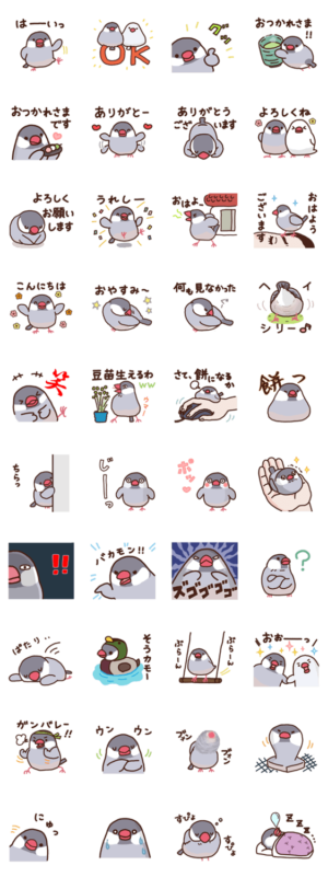 文鳥好きによる文鳥好きのためのぶんちょスタンプ。 シルバーぶんちょバージョンです。ナマイキで愛らしく、すぐに餅になります。