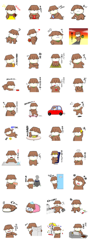人間味ある犬のキャラが面白い、誰もがとても楽しく使えるスタンプだと思います。