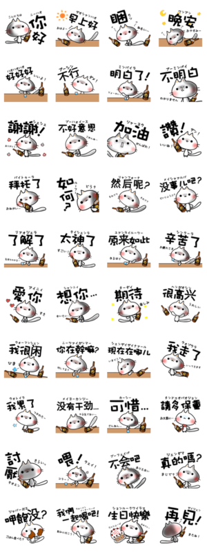 やさぐれ猫「しにゃんこ」の中国語日常会話スタンプ☆