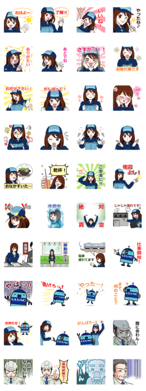 「真空技術で産業と科学に貢献する」ULVACの女性社員 「真空(まそら)ちゃん」と「あるばっくん」のLINEスタンプです! あと、工場関係者のスタンプもあります。