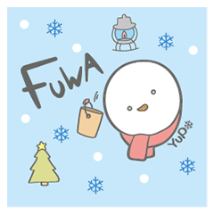 白くてふわふわでもちもちのゆぴまるスタンプ スイカを食べたり本を読んだりする雪だるまちゃんです。