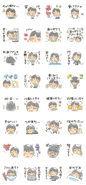 男の子のスタンプ登場しました。女の子と合わせてどうぞ。スタンプで夫婦仲良くラブラブに。カップル/嫁/主婦/奥さん/妻/彼女/夫/旦那/バレンタイン/好き/ハートかなぴ より発売