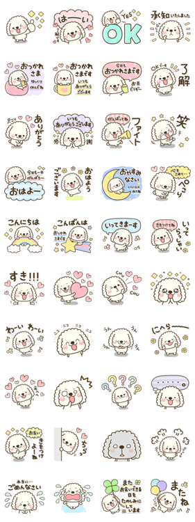 トイプードルぷーちゃん(白毛ver)の毎日使えるスタンプです。【作:いしいともこ】いしいともこ より発売