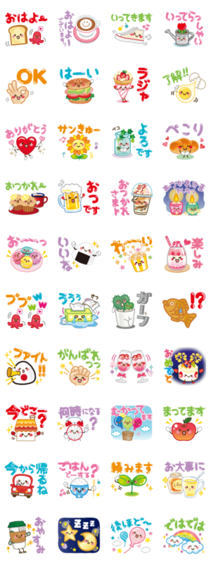 お友達や家族みんなに使えるスタンプです。カラフルな楽しいモチーフと見やすいデカ文字で長く楽しんで下さい★スマホ初心者さんにもOK!敬語ありなので先輩ママ友にも〜♪