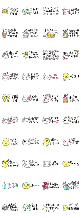 縦サイズが少し小さめ、省スペースだけど見やすい文字の40個。気持ちが伝わる大人かわいい使いやすいスタンプです。