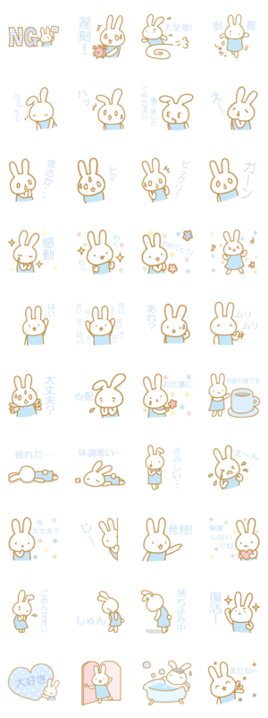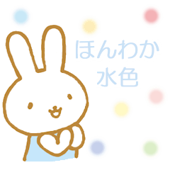 気持ちを伝える使いやすい文字入り多数。ほんわか水色のうさぎのスタンプです。『ほんわかピンク色』も一緒に使ってください。