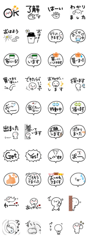 家族との連絡に便利なスタンプセットです。~買い物・お願い・外出・待ち合わせ・移動・家族・連絡~
