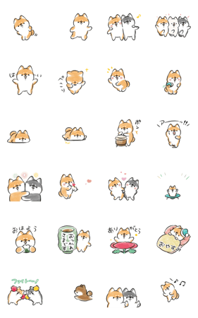 ごきげんにダンスをする柴犬のスタンプです。よく使う日常あいさつも入ってますmimori より発売