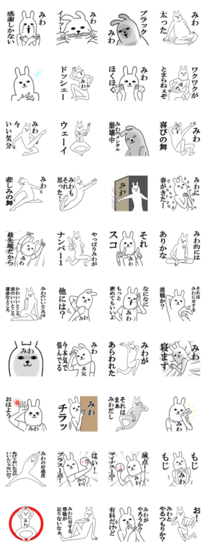 みわちゃんが使うスタンプです。みわこ,三輪,美和,美輪,三和,美羽,弥和,見和,三羽,箕輪,美和子,実和子,三倭子,三和子,三輪子,未和子,美知子など全国のみわ専用のスタンプしん より発売