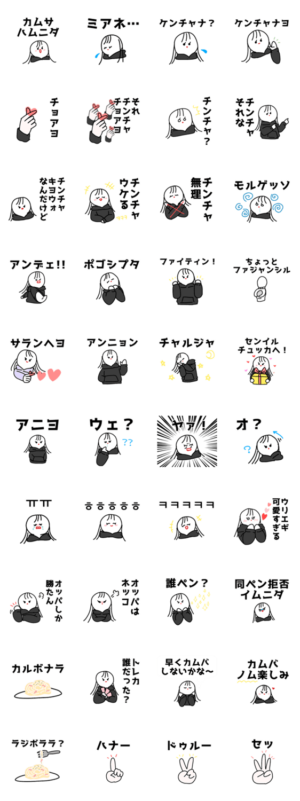 韓国料理、韓国ドラマ、韓流俳優、KPOPアイドルなどの韓国好きな人や、推しや恋人が韓国人の人が使えるカタコト韓国語スタンプです。秒でチンチャ。簡単な単語勉強にも