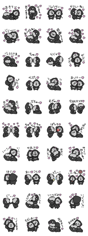 シュールなミニゴリラのカップルスタンプです。eribo より発売