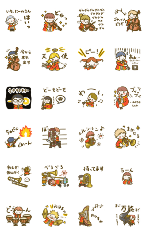 こどもの王様に仕える、こどもの宮廷音楽家たちです。オーケストラの楽器が揃ってます。こばりんとんぶる より発売
