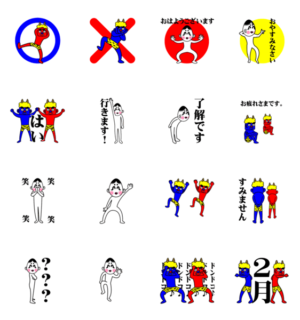 日本の季節、2月のアニメーションスタンプです。赤鬼と青鬼、おかめさんが元気に動きます。豆まきのや日常会話にどうぞ。