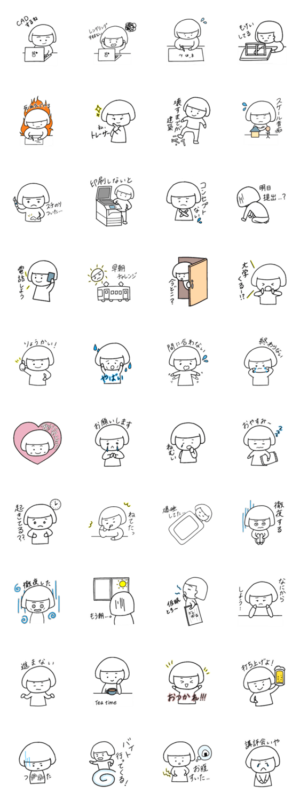 女子大の建築学生が描いた、建築学生の毎日スタンプ(ダメ子設定)。日常会話にも◎midori. より発売