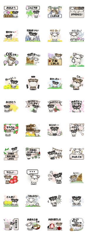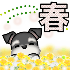 ミニチュアシュナウザーのほのぼのとした春のスタンプです。ぽてこ より発売
