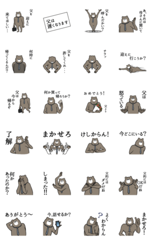お父さん(パパ)専用のシュールな父クマスタンプです。家族に送りまくってください。E2 Design inc より発売