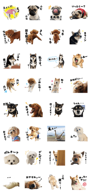 いぬのきもち・ねこのきもちアプリユーザーさんの可愛いワンコたちがスタンプになって登場!お気に入りを見つけてね!