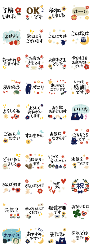 大きく見やすい♪ かわいい手書き文字に、お花と動物を添えた使いやすい北欧風の敬語スタンプです。 ..丁寧/おしゃれシンプル/お洒落な日常/大人可愛い/毎日挨拶/デカ文字ヒマラヤ雑貨 より発売
