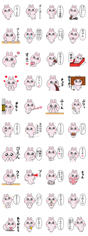 友達や家族など大好きな人へ気持ちを伝えたいときやバレンタインデーに使えます。煽り低めでかわいいうさぎのラピピのスタンプ