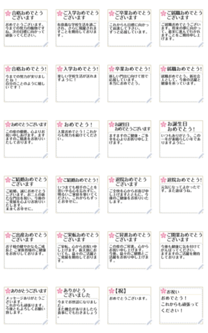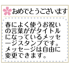 春のお祝い中心です。シンプルな桜マークつきのビジネスメール風です。合格祝い/入学祝い/卒業祝い/就職/昇進/栄転/結婚/出産/誕生日/退院/開業/お礼/おめでとう/敬語 現在この商品は一部のスマートフォン版LINE 10.3.0以上のトークルームでのみ使用できます。動作環境の最新情報はヘルプをご確認ください。erica より発売
