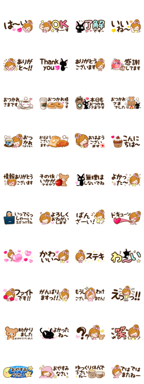 いつものスタンプの【半分サイズ】の省スペーススタンプです♪トークが見やすく邪魔しません☆今回はにぎやかに、黒猫とくまちゃんも参加♪さりげなくかわいいデザインですルルー より発売